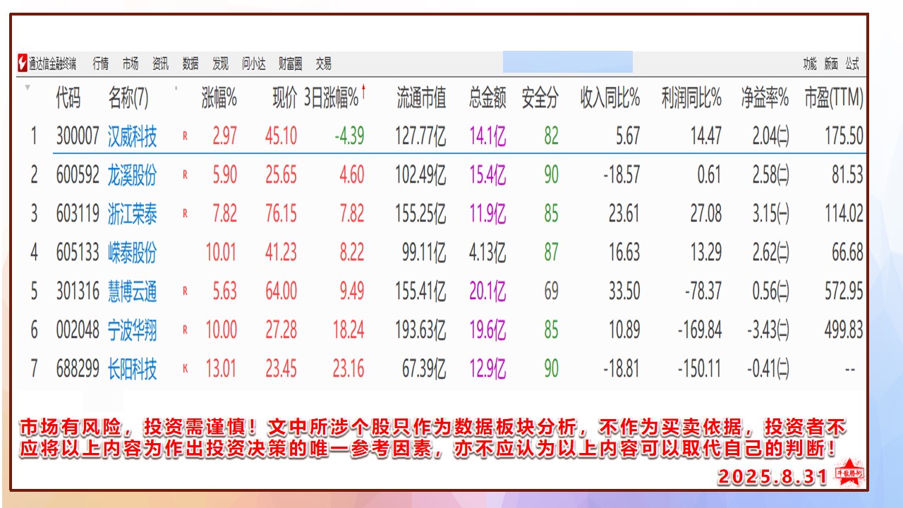 *市场有风险,投资需谨慎!文中所涉个股只作为数据板块分析,不作买卖依据,投资者不应将以上内容为作出投资决策的唯一参考因素,亦不应认为以上内容可以取代自己的判断。