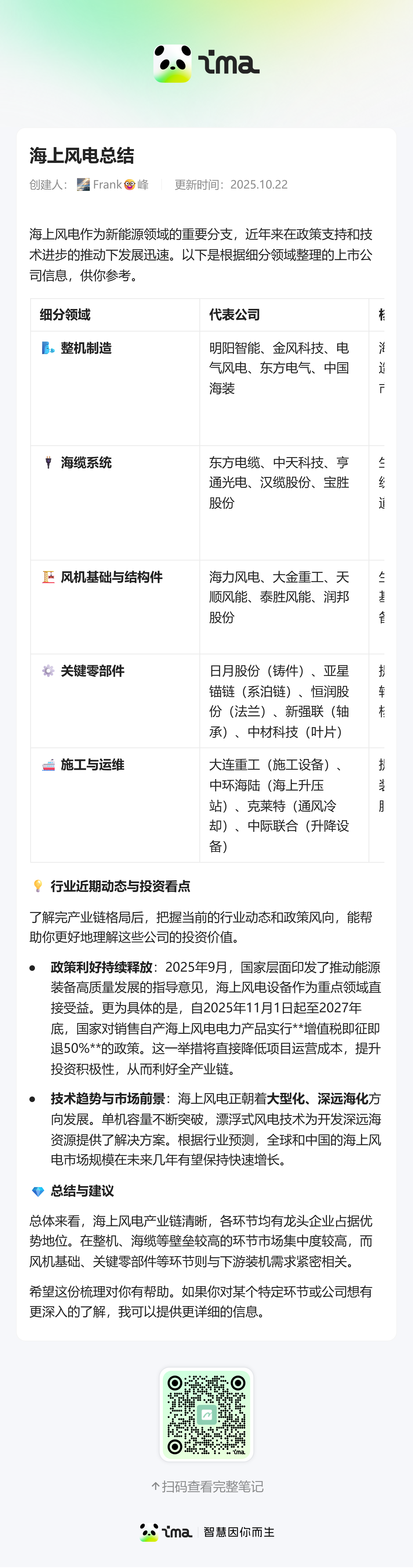 继续看好板块性机会,推荐顺序为【海风 & 出海】(对应 15 - 20X PE)、【风机】(10X 以内 PE)、【资本开支结束产能刚爬坡的部分零部件】(12X PE)。