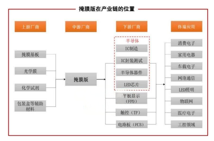 光罩又称掩膜版,是半导体制造过程中的关键材料,在半导体、显示面板、触摸屏、电路板等领域广泛应用,其中半导体领域占下游应用份额的 60%。