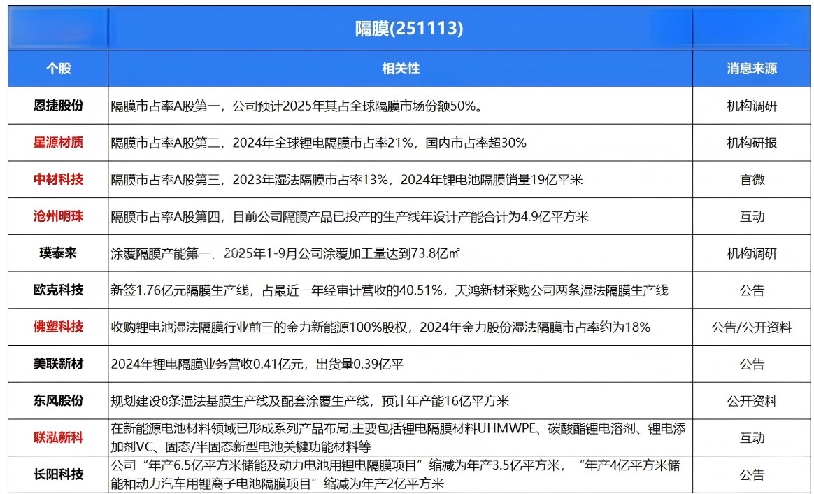 持续看好:天际股份、海科新源、华盛锂电(电解液相关);湖南裕能、万润新能(铁锂正极);嘉元科技(通信 / 有色联合)、恩捷股份、胜利精密、新宙邦、星源材质(负极 / 隔膜 / 电解液);贝特瑞、璞泰来、尚太科技、滨海能源(负极及材料)。