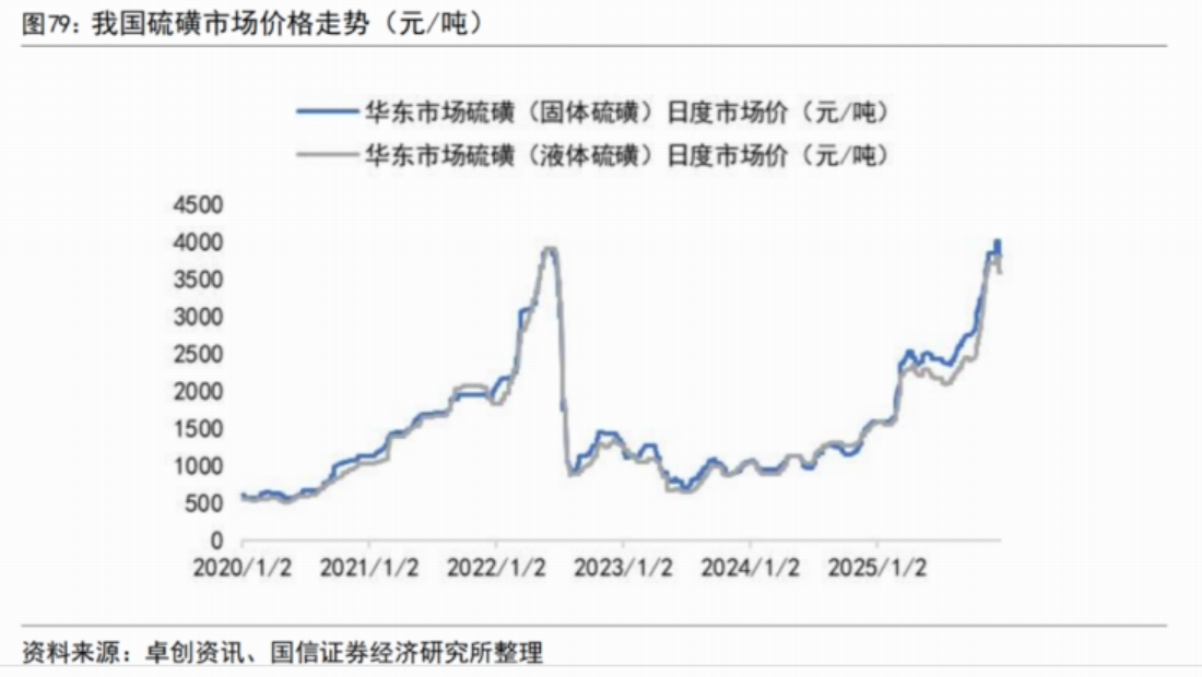 公司拥有121 万吨硫磺产能(行业第三),2025 年 12 月国内固体 / 液体硫磺均价同比涨 160%,月内涨幅约 5%,显著增厚公司利润。