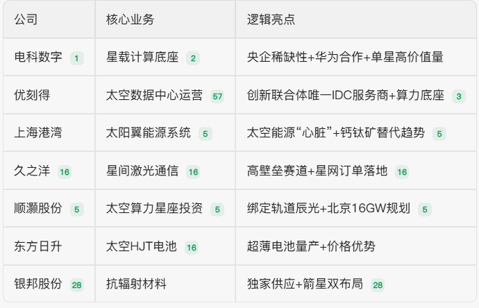 太空算力关联企业: