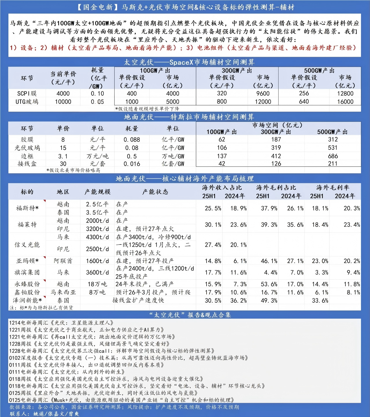 高测股份:行业内率先实现 50μm 超薄片下线,产品适配柔性 HJT 需求,与太空光伏场景高度契合。
