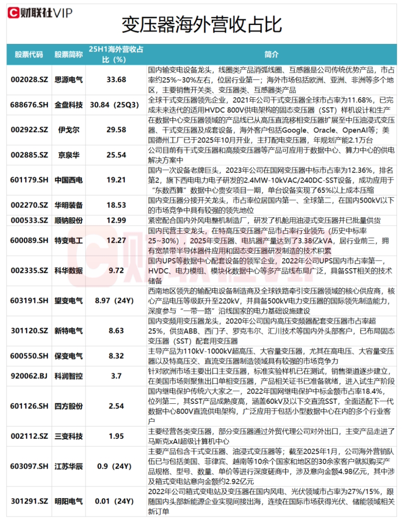 据媒体报道,全球AI算力建设进入爆发期,电力设备变压器正升级为算力基础设施的核心,大量变压器工厂已经处于满产的状态,其中部分面向数据中心的业务订单都排到了2027年,美国市场交付周期已经从50周延长至127周。华泰证券表示,以变压器为代表的一次设备出海逻辑仍然强势,无论主网、配网,从订单及收入来看仍然呈现高速增长态势,展望后续,高电压等级电网设备的紧缺更具备持续性。