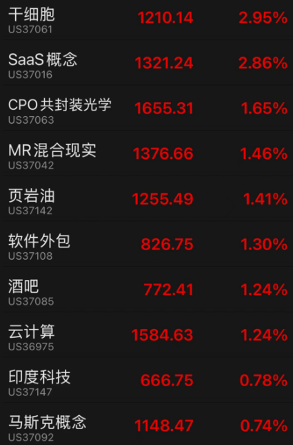 隔夜美股涨幅前十板块: