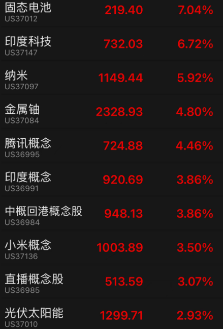 隔夜美股涨幅前十板块: