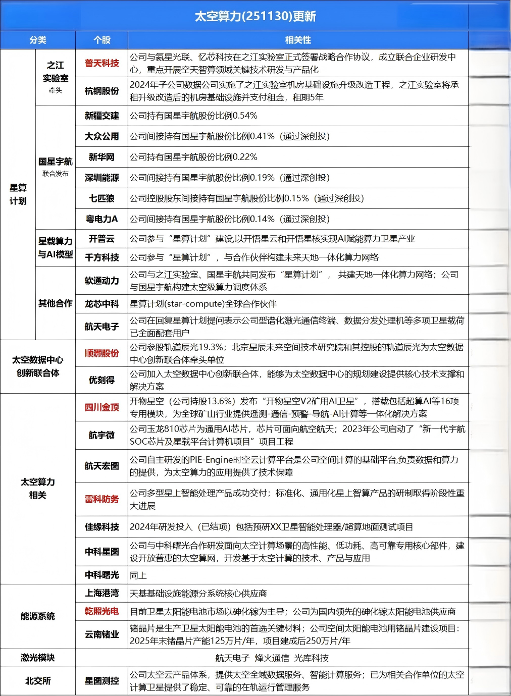 分类 | 子分类 | 个股 | 相关性 |