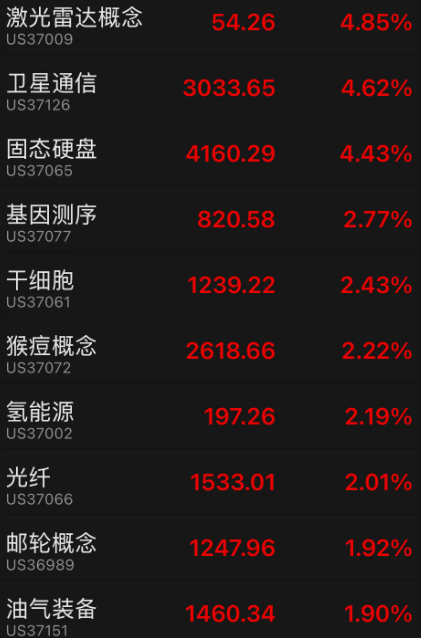 隔夜美股涨幅前十板块: