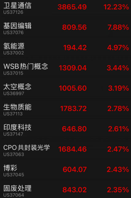 隔夜美股涨幅前十板块: